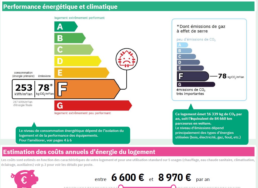 Montant estimé des dépenses annuelles d’énergie pour un usage standard : entre 6600 € et 8970 € par an. Prix moyens des énergies indexés sur l’année 2021/2022/2023 (abonnements compris) Consommation énergie finale : 247 kWh/m²/an.