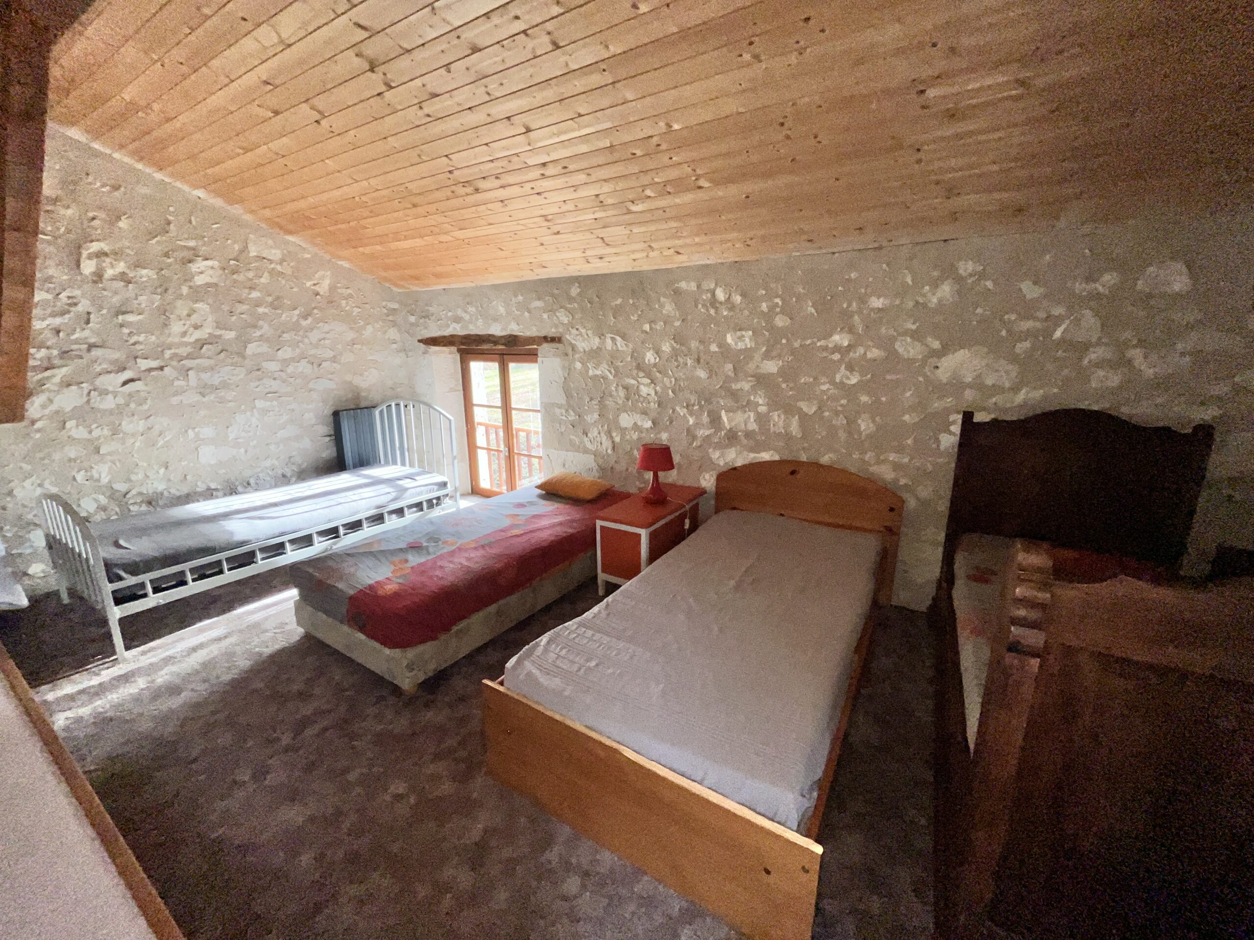 À l’étage, trois chambres confortables ainsi qu’une grande pièce actuellement aménagée en salle de jeux et dortoir laissent libre cours à vos projets : espace jeux, atelier, chambre supplémentaire ou salle de détente.