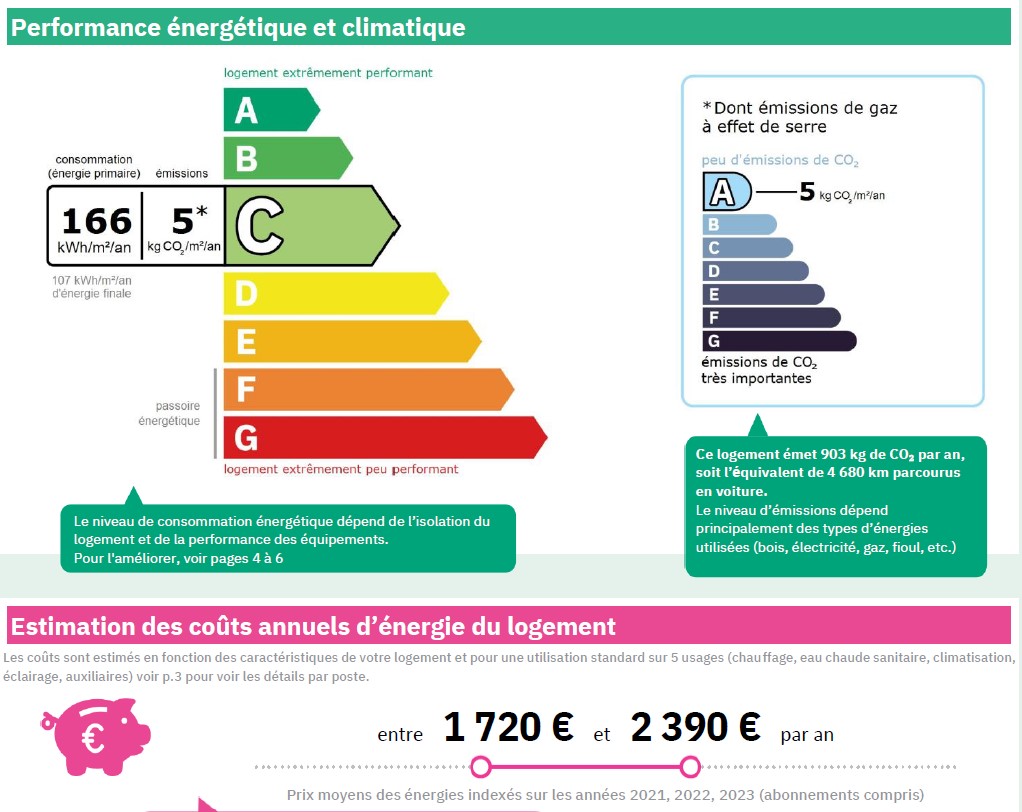 Montant estimé des dépenses annuelles d’énergie pour un usage standard : entre 1 720 € et 2 390 € sur les années 2021, 2022 et 2023 (abonnements compris).